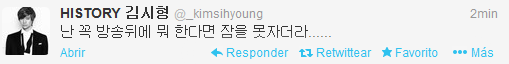 [N/T: En su tweet previo estaba cocinando con Jae Ho o preguntando para cocinar o comer con él. El tweet lo ha eliminado.]